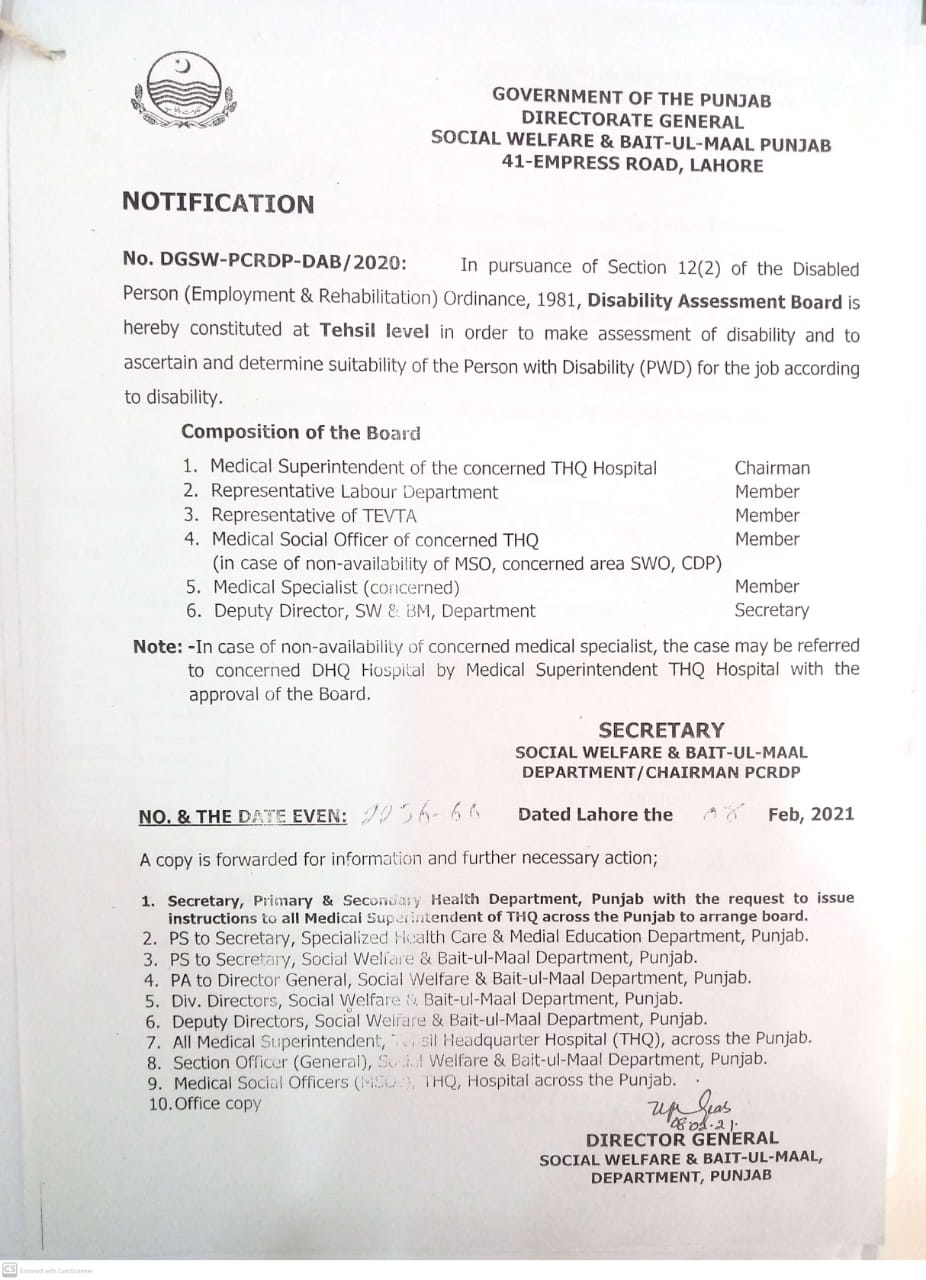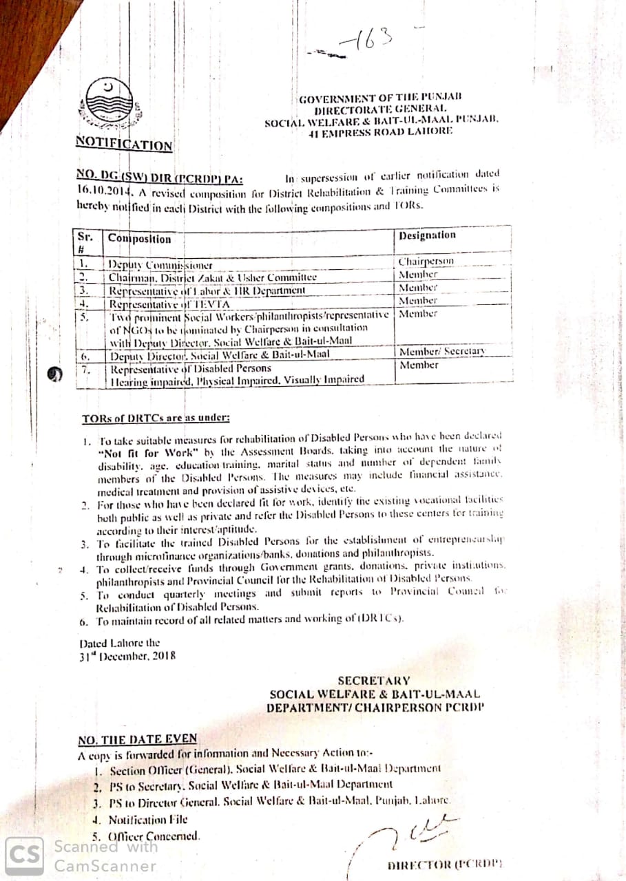 Provincial Council for the Rehabilitation of Disabled Persons (PCRDP) Member Notification